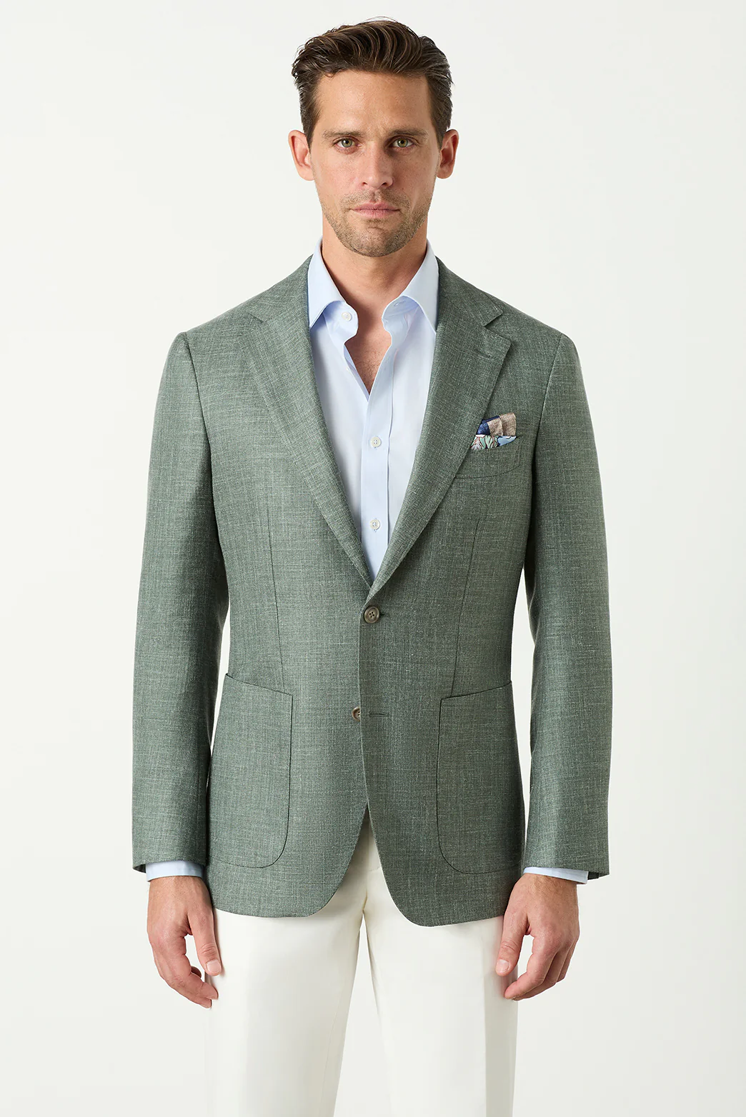 An M.J. Bale icon in the making, the single-breasted Carlone Jacket has been created from a luxe wool-silk-linen blend. These noble natural fibres have been woven in Italy into a sage lightweight twill. Cut to our Slim Fit, it features natural shoulders, wide notch lapels, a half-canvas construction and is fully lined with Bemberg Cupro twill lining. A garment of integrity, consider the Carlone Jacket an heirloom piece.