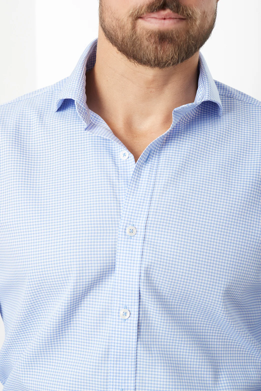The Christison 'Dry'n'Fly' shirt is crafted from 100% cotton in a compact twill. It is woven with an exclusive, innovative structure that eliminates the need for ironing. As the term implies, simply wash, dry on a hangar, then fly out the door.
