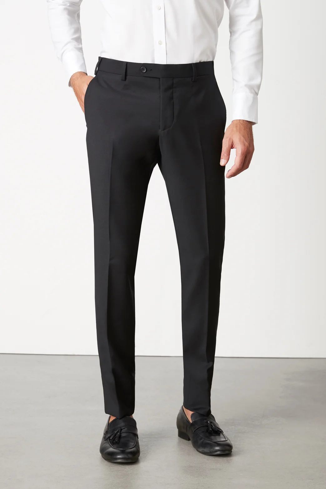 Created from 100% Australian superfine Merino wool, the Guyra Black Trouser is woven in a Super 110s two-by-two tropical weave with natural stretch. It comes with a hemmed finish and features a constructed internal waistband.