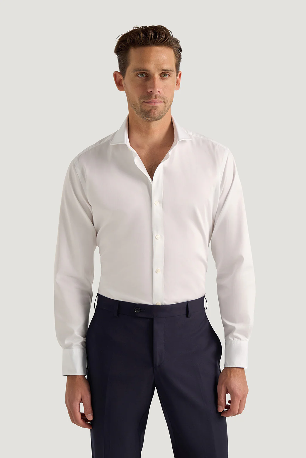 Part of M.J. Bale Classics, the Parlour White Shirt is woven from 100% cotton in a compact sateen. Cut to our Athletic Fit and featuring two-button cuffs, the Parlour is an elegant style staple, perfect for both formal and business tailoring.